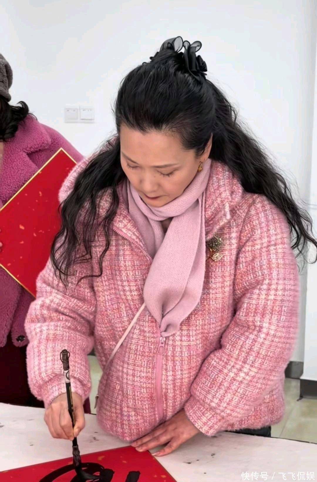二、 只有“笨功夫”,才见真人情到了岛上,何赛飞没去走那些虚头巴脑的亲戚,直接去了敬老院。很多人做公益,那是“走流程”:车一停,礼品一放,横幅一拉,拍几张照片就走人。可何赛飞这趟,看着不像作秀,像回自家厨房做饭。她平时就练书法,这次更是毛笔一拿,红纸一铺,在那儿写起了“福”字。落笔利落,收锋干净,那一个个福字摊开,像是在晾晒年味。有人想付钱,她摆摆手:“过年图个喜庆,拿着。”这动作看着简单,其实最费神。她不光写,还亲手递到老人手里,叮嘱“别弄皱了”。她坐在那儿,挨个问候,耐心听老人絮叨,合影时不嫌麻烦。现在的明星,谁愿意把宝贵的春节假期花在听陌生老人唠嗑上?这年头,肯花时间陪你耗“笨功夫”的,才是真的人情味。